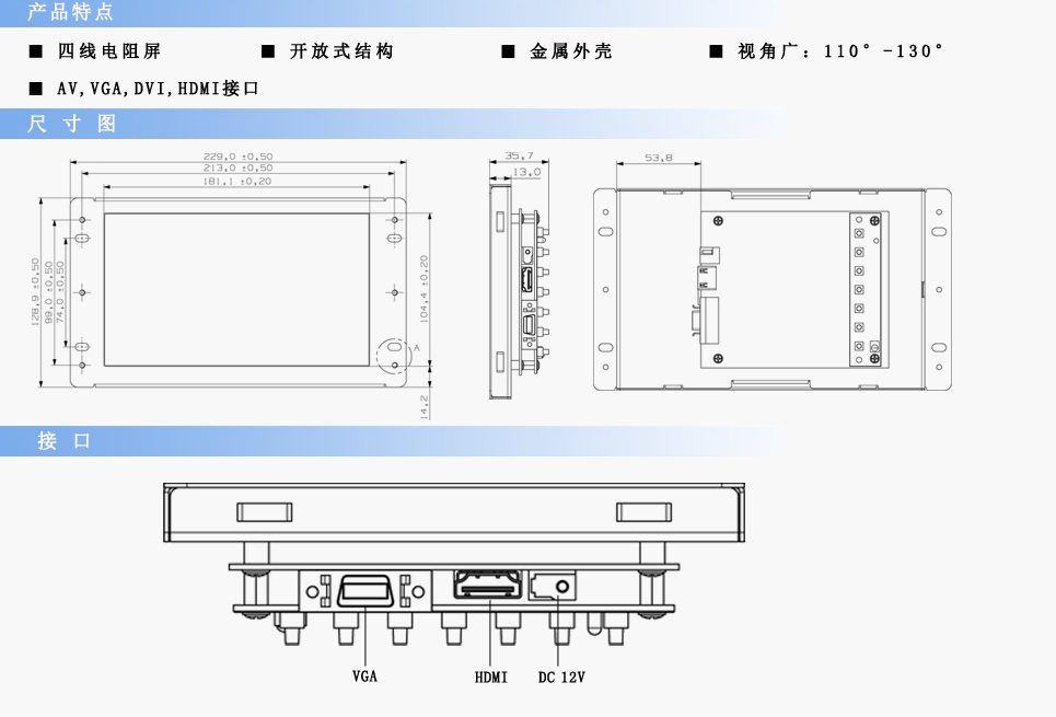 | 輸入信號 | RCA Video×2,RCA Audio×1,VGA×1,DVI×1,HDMI×1 | ||