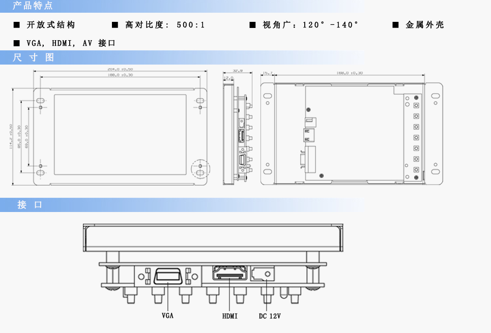 尺寸:204×114.2×34.7 mm