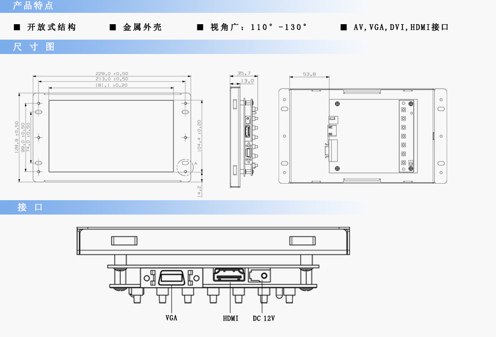| 輸入信號 | RCA Video×2,RCA Audio×1,VGA×1,DVI×1,HDMI×1 | ||