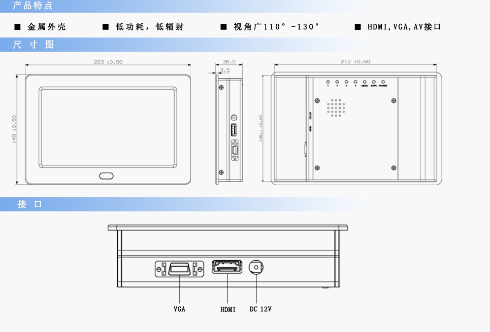 | 輸入信號 | RCA Video×2,RCA Audio×1,VGA×1,DVI×1,HDMI×1 | ||