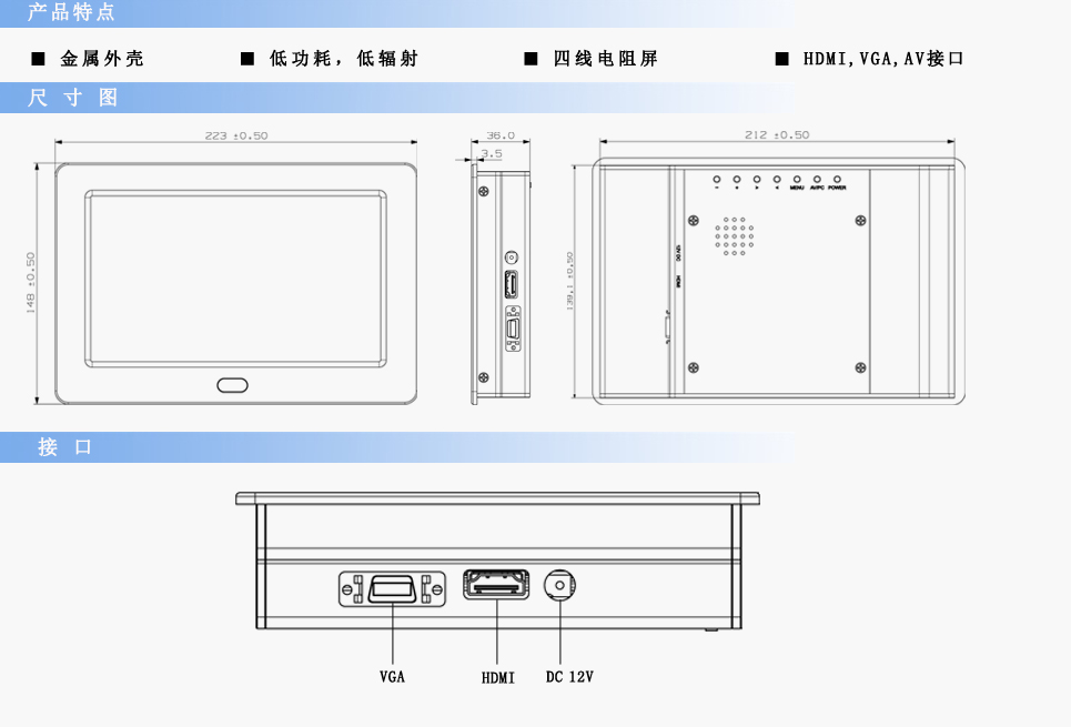 尺寸:223×148×36mm