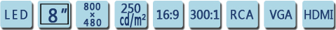 輸入信號:RCA Video×2,RCA Audio×1,VGA×1,DVI×1,HDMI×1
