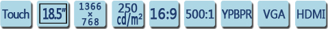 輸入信號:RCA Video×2,RCA Audio×1,VGA×1,HDMI×1,YPBPR×1